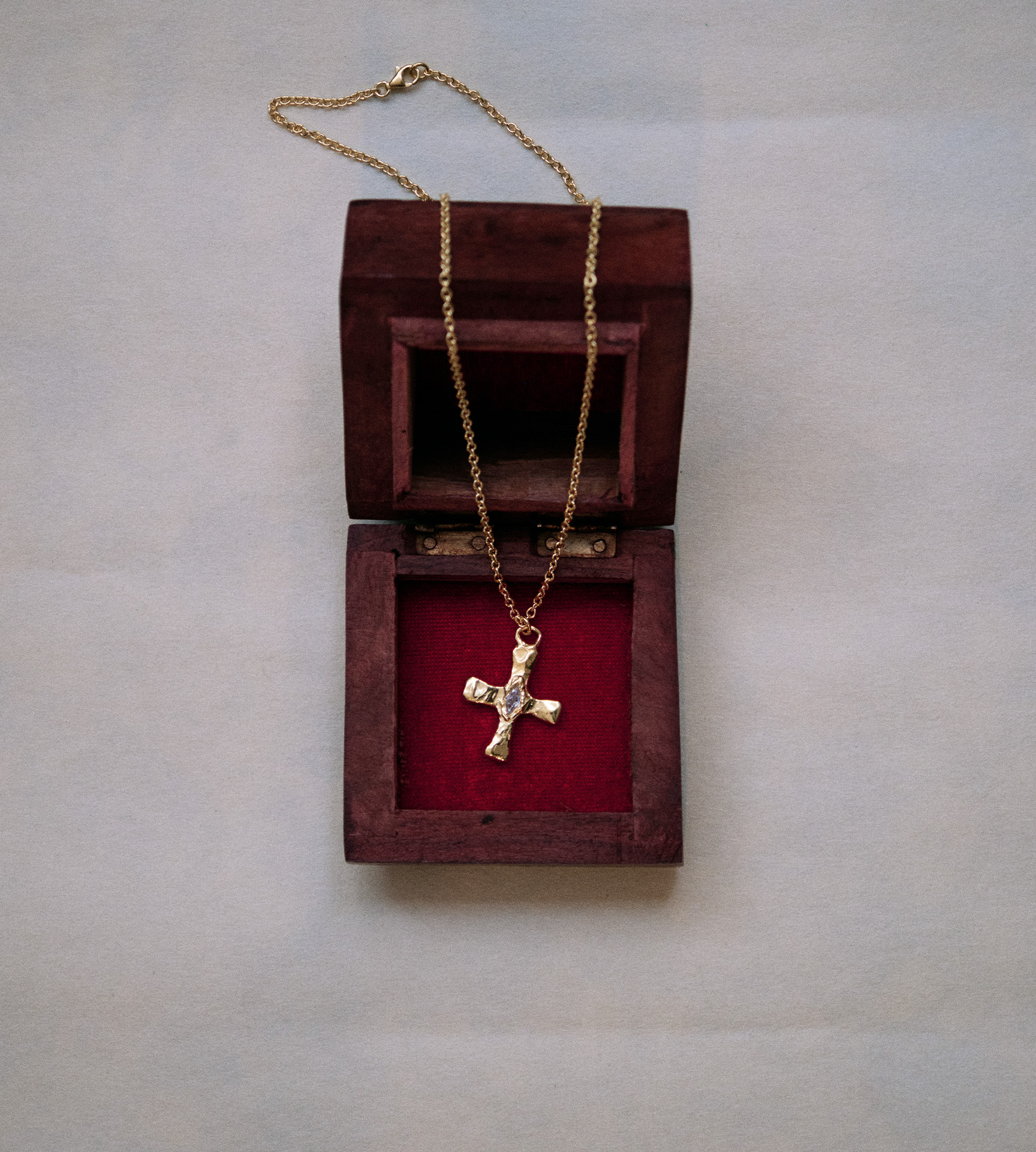 A one-of-a-kind piece from a limited capsule collection of ten cross necklaces. Each piece is individually handcrafted, celebrating symbolism, individuality and bold statement design.